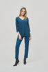 Indulge in effortless glamour with this silky knit top. The piece boasts a flattering fit-and-flare silhouette that seamlessly blends style and comfort. The three-quarter sleeves paired with the V-shaped neckline adorned with tasteful beads create a poised look that can easily transition from day to night.
