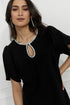 Experience the elegance of Frank Lyman with this knee-length shift dress. Featuring a round neck and puff short sleeves, this feminine piece is adorned with jewel embellishments and a keyhole detail. Perfect for formal and semi-formal occasions, it seamlessly blends sophistication and style.