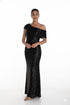 Embrace timeless elegance with this Frank Lyman dress, featuring a graceful off-the-shoulder neckline that exudes sophistication. The luxurious blend of 97% polyester and 3% elastane creates a shimmering fabric that catches the light beautifully, offering both comfort and a flattering fit. Perfect for elevated occasions, this piece combines refined style with effortless wearability.