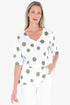 The Scratch Spot Top by Jump features a playful, abstract spot design on a soft, lightweight fabric. With a relaxed fit, short sleeves, and a flattering round neckline, it’s the perfect top to dress up with tailored pants or keep casual with denim.