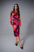 Exude confidence and charm in this sheath dress, adorned with a vibrant floral print and a figure-flattering silhouette. Thoughtfully designed with delicate front waist shirring to enhance an hourglass shape, it features a graceful scoop neckline, long sleeves, and a below-the-knee length for timeless elegance. Crafted from luxurious silky knit fabric, this versatile piece is perfect for a sophisticated evening out or an elevated office ensemble.